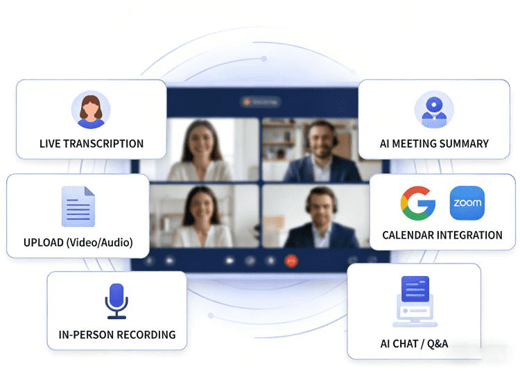 All major tools integrate with Zoom, Google Meet, and Microsoft Teams. They automatically join scheduled meetings as participants.