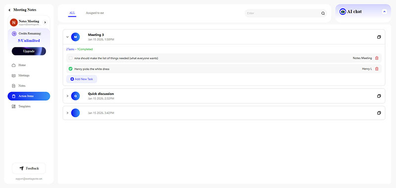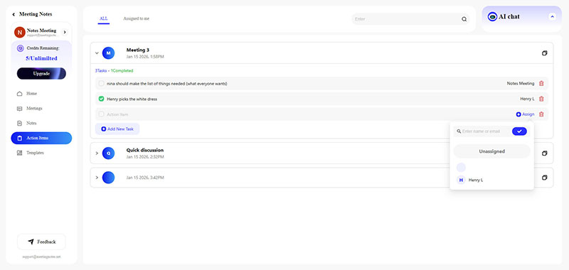 What does "Assign to me" mean? As the name suggests, it refers to tasks that you are responsible for handling. In MeetingNotes, "Assign to me" is a convenient way to quickly find the action items assigned to you.