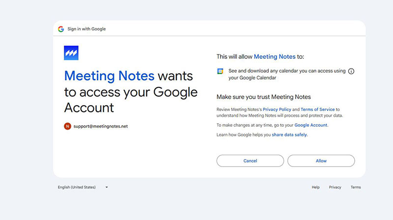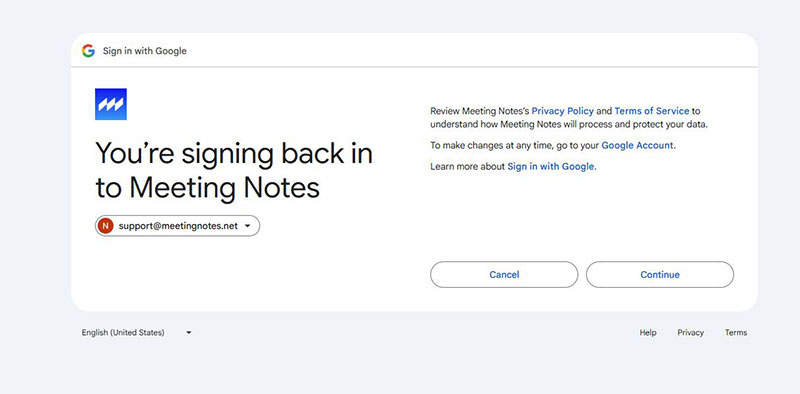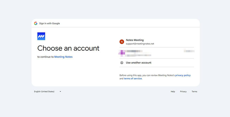 Note: Your MeetingNotes account can be different from the Google account you need to authorize, but we recommend using the same account.