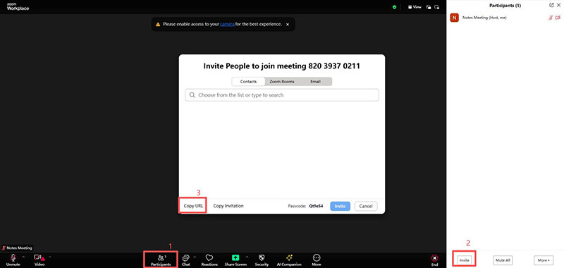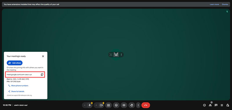 Step 2. Copy the meeting link that pops up on the left, or simply copy the URL from your browser.