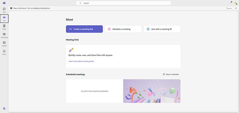 Step 1. Go to the Teams meeting tool's online page and click "Meet" on the left to enter the meeting scheduling interface.