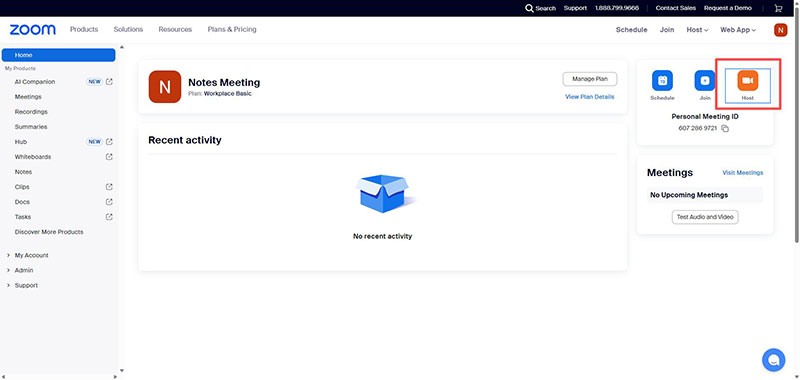 Step 1. Open Zoom and click "Host" on the right to create a meeting.
