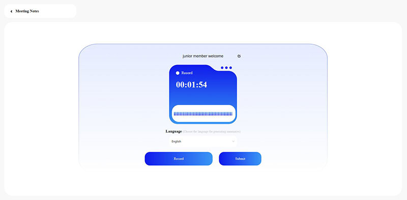 You can pause the recording at any time during the process. After the meeting ends, click the Stop button and submit the recorded audio.
