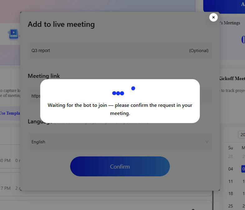 First, invite MeetingNotes to the ongoing meeting, and the page will then redirect to the real-time transcription page.