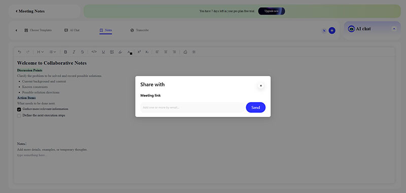 Even after the meeting has ended, Notes feature from MeetingNotes allows you to share notes anytime, anywhere. You simply need to: